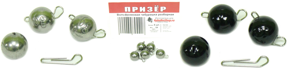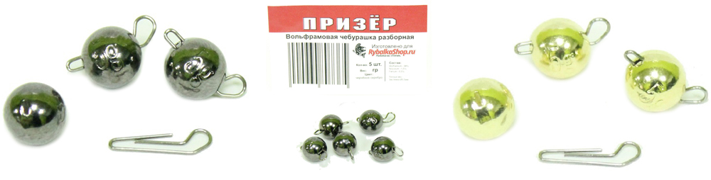 Вольфрамовые чебурашки «ПРИЗЁР» имеют пять вариантов расцветок: натуральный вольфрам, серебряный, черненое серебро, черный и золотистый. А разнообразие весов - от 1 до 30 г - дает огромный выбор искушенным спиннингистам.