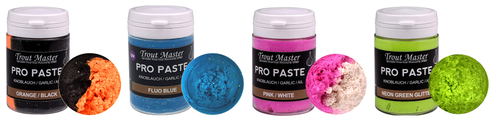 Паста для форели Trout Master имеет не только приятный для рыбы вкус и запах, но и привлекательный внешний вид. Выпускается она в огромном разнообразии расцветок – от натуральных до кислотных, в том числе ярких фантазийных, заметных издалека и столь любимых форелью. Наличие блесток является дополнительным элементом, привлекающим хищника.
