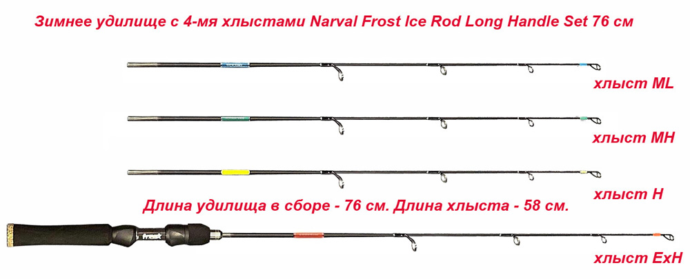 Если вам не будет хватать возможностей определенного хлыстика-вершинки, просто докупите необходимые сменные хлысты Narval Frost Ice Rod Long Handle Tip, выстроив свой собственный зимний набор.