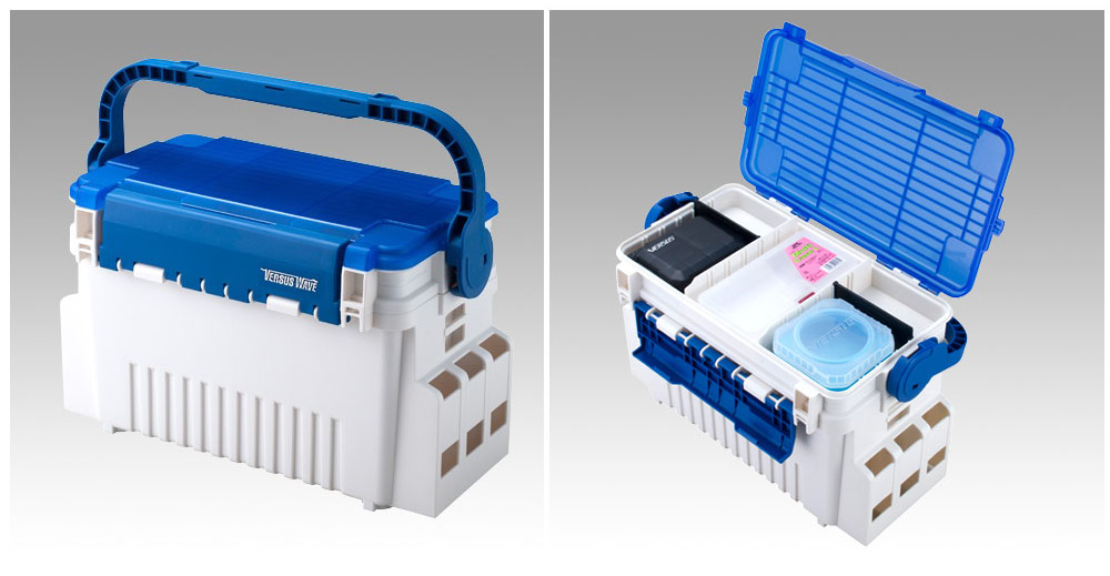 Ящик-стойка Versus Wave VW-2055– это инновационная модель 2-х уровневого рыболовного ящика японской компании Meihokagaku Corp. Она представляет собой уменьшенный вариант ящиков Versus VW-2070/VS-7070. Глубина верхнего уровня составляет 45 мм. Он разделен на 3 фиксированные секции, а съёмные сепараторы, которых в данной модели 4 шт., позволяют максимально комфортно организовать пространство для приманок и аксессуаров. Глубина нижнего уровня составляет 160 мм. Он имеет 1 съемный сепаратор, и, чаще всего, применяется для размещения рыболовных коробочек и кошельков с приманками.