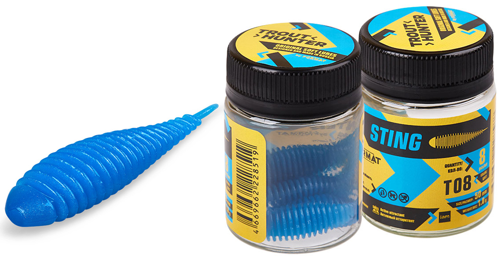 Trout Hunter Sting 50mm - популярная ребристая форма приманки в интерпретации IAM. Выгодно выделяется среди аналогов за счет измененной формы перемычки — игра приманки стала более активной. Приманка Sting обладает положительной плавучестью и ориентирована на ловлю форели как в теплое, так и в холодное время года.