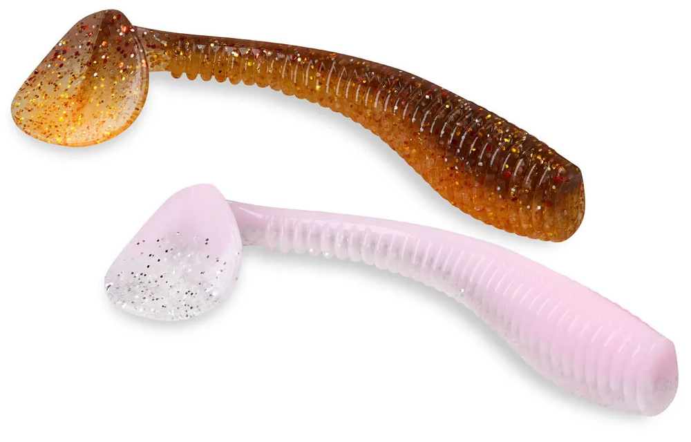В разработке данной силиконовой приманки применены не только уже зарекомендовавшие себя приемы, но и новые. В частности – это соотношение длины хвостовой части к телу приманки. Пропорции приманки составляют примерно 60% к 40%, что делает хвостовую часть, вкупе с укрупненной пяткой, очень подвижной, что не может не привлекать хищника.