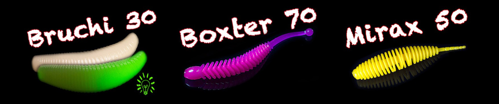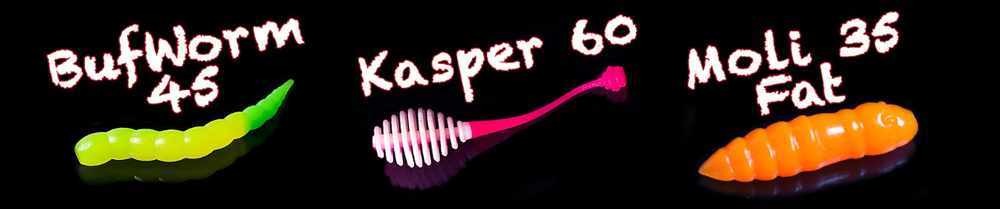 Форелевая Trout Baits Jara. Модели: Bruchi 30 и 40, Mirax 50 и 70, Jum-Jum 100, Kasper 60, Boxter 70, Boxter Fat 80, Moli Fat 35, Buf Worm 45.