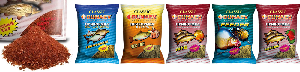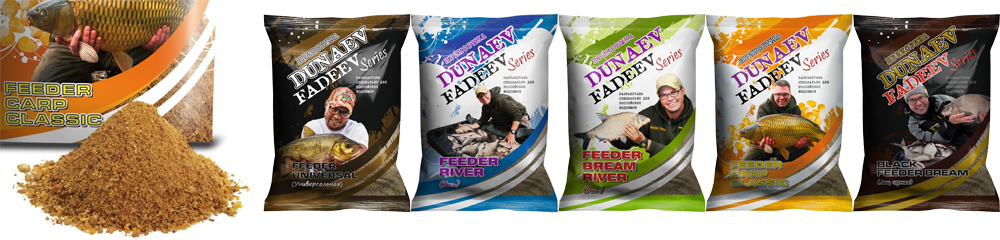 В ассортимента прикормок Dunaev вы можете найти смеси для фидерной ловли, разработанные известным рыболовом Алексеем Фадеевым.