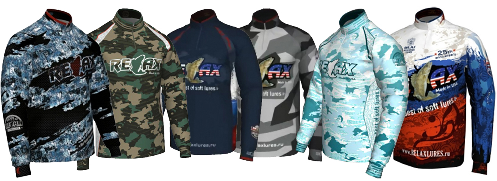 Джерси Relax выполнены из улучшенной ткани Cool Pass, имеющей охлаждающий эффект в жару, защищающей от УФ лучей, моментально выводящей пар наружу. Материал гипоаллергенный, быстросохнущий и очень приятный к телу. В линейке представлены как однотонные модели, так и более яркие цвета камуфляжа, а также стилизованные орнаментом фирменного логотипа Relax. Цвета не подвержены выгоранию на солнце.