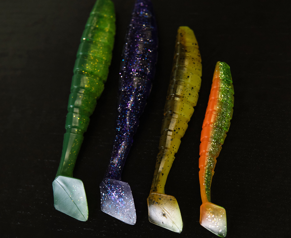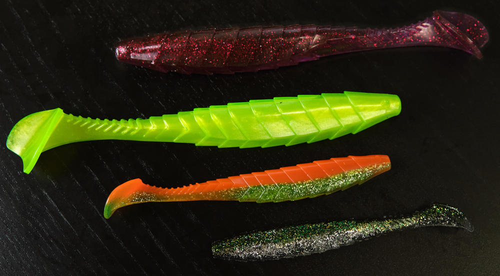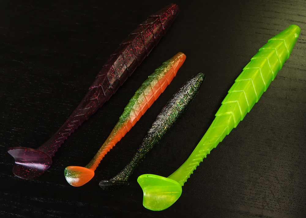 Модели длиной 4 и 5 дюймов — классические виброхвосты для джиговой ловли, допускающие оснащение как джиг-головкой разной массы, так и шарниром с грузом-«чебурашкой», двойником или офсетным крючком. Самая габаритная на сегодня модель — Flint 6” — прежде всего предназначена для оснащения джиг-головкой, в том числе и с дополнительными тройниками на поводках. Или же снасточкой из тройников на поводках — Stinger Rigs — со спиральным фиксатором, с огрузкой или без отягощения.