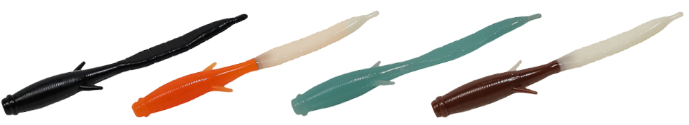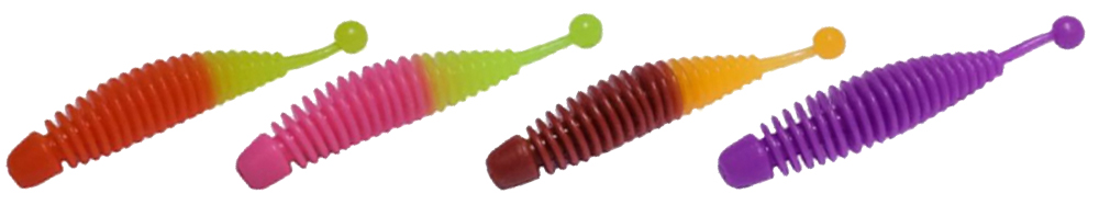 Еще один червь - River Lynx Rib Worm 80 мм имеет длинный цилиндрический хвост с объемным шариком на конце, который приподнимает тело приманки над дном, привлекая тем самым внимание рыбы и позволяя ей легко заглотить приманку. Дополнительным раздражителем для рыбы является мощный аттрактант, который провоцирует даже пассивную рыбу на уверенную поклевку.