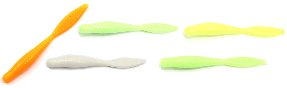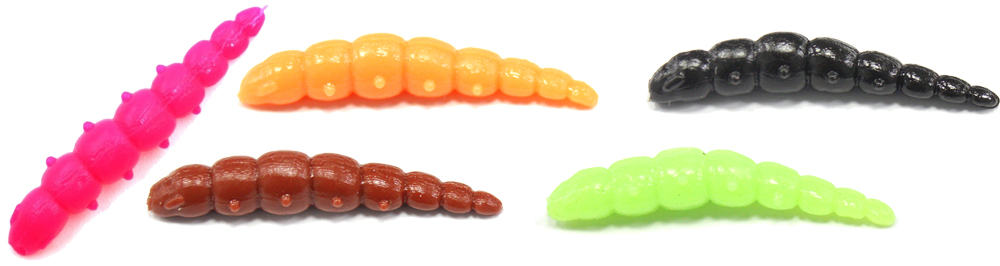 - Самые разнообразные расцветки, позволяющие подобрать перспективный вариант под любые условия ловли. В каталоге Trout Zone можно купить силикон, цвет которого будет как реалистичным, напоминающим естественную кормовую базу форели, так и ярко-кислотным, заметным с самого дальнего расстояния.