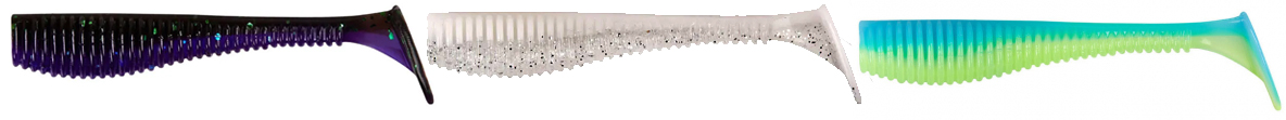 И, казалось бы, что такое соотношение должно быть слабым местом силиконовой приманки, но нет, оно является ее преимуществом. Ведь большинство атак хищника приходится на боковую часть силиконовой приманки в районе хвоста и при атаке хвост просто складывается, сохраняя ее целой. Данная конструкция модели позволила использовать более мягкий материал, благодаря которому игра силиконовой приманки становится значительно активнее. Ребристое тело задерживает воздух между ребрами, который выходит под водой, еще более реалистично имитируя малька, а большой размерный ряд и широкий ассортимент цветов делают эту приманку максимально универсальной. Используя данную модель в своем ассортименте, любой рыболов многократно увеличит шансы на поимку рыбы.