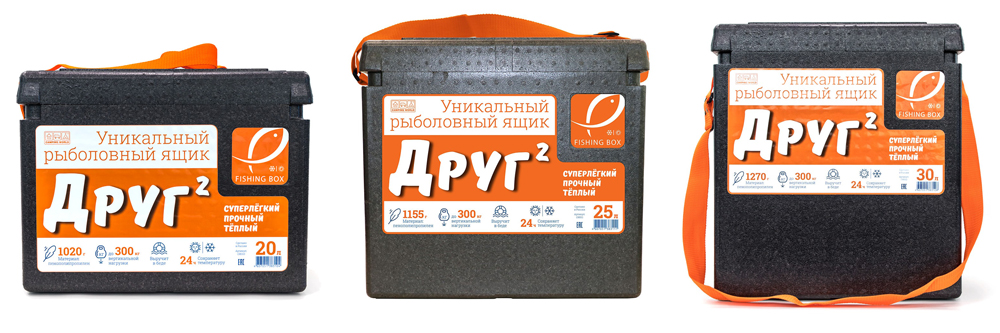 "Друг-2" на все 100% отвечает этим требованиям. Ящик изготовлен из пенополипропилена – материал, который имеет повышенные характеристики прочности и жесткости. Рыболовные ящики из пенополипропилена имеют повышенные прочностные характеристики (по сравнению с изделиями из ППС) и великолепный внешний вид. Если у вас лишний вес, не страшно. Ящик выдерживает вертикальную нагрузку до 300 кг. При этом бокс легкий. Например, "Друг-2" объемом 20 л весит всего 1,020 кг.