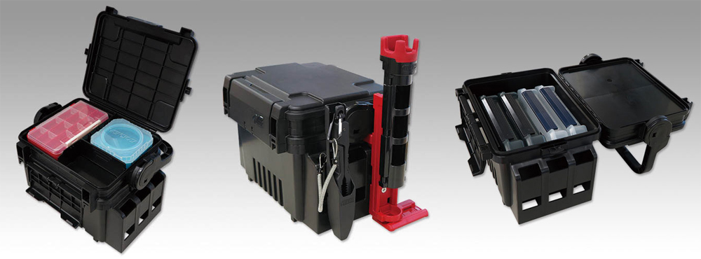 Ящики-стойки Meiho-Versus изготовлены из ударопрочного пластика, имеют несколько креплений для различного навесного оборудования. К стенкам такого ящика можно прикрепить несколько подстаканников для пластиковых бутылок, а также держателей для удилищ.