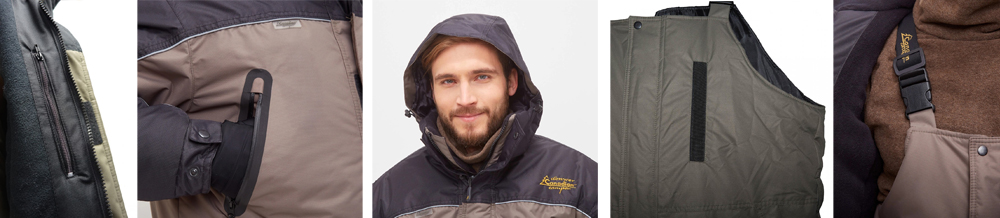 В каталоге фирмы Canadian Camper представлена одежда, которая призвана защищать от любых капризов погоды. Ориентируясь на российских покупателей, компания предлагает теплые зимние костюмы, которые рассчитаны на ловлю в настоящий мороз.