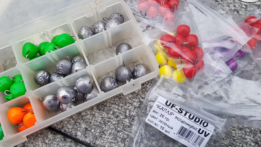 - В ассортименте есть как крашеные груза, в том числе имеющие свечение в ультрафиолете, так и более привычные - свинцовые .