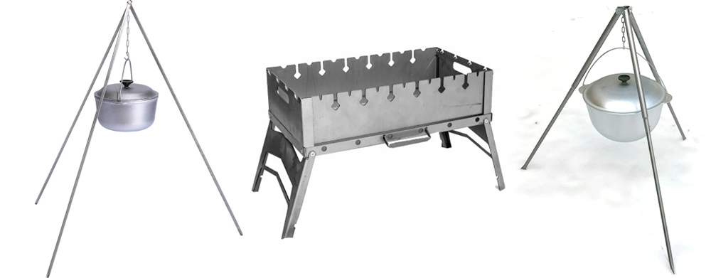 Треноги костровые "Новый горизонт" предназначены для приготовления пищи на костре с использованием казанков или походных туристических котелков. Чтобы максимально облегчить процесс приготовления пищи в походных условиях, необходимо захватить с собой на природу все необходимые приспособления. Так, если вы планируете готовить еду на костре, вам обязательно понадобятся треноги "Новый горизонт". Треноги укомплектованы цепью с крючком на конце для подвешивания котелка.
