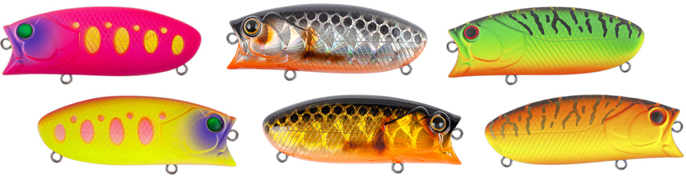 Внимания заслуживает вся серия кренков TsuYoki Chef. Воблеры имеют рельефную фактуру поверхности, состоящую из ромбовидных насечек в верхней части тела приманки и косых насечек в нижней. Передняя часть воблера выполнена в виде головы малька с жаберными крышками и реалистичными 3D глазами. Имеется встроенная система баланса, шары которой при анимации постукивают, создавая еще один раздражитель для хищника.