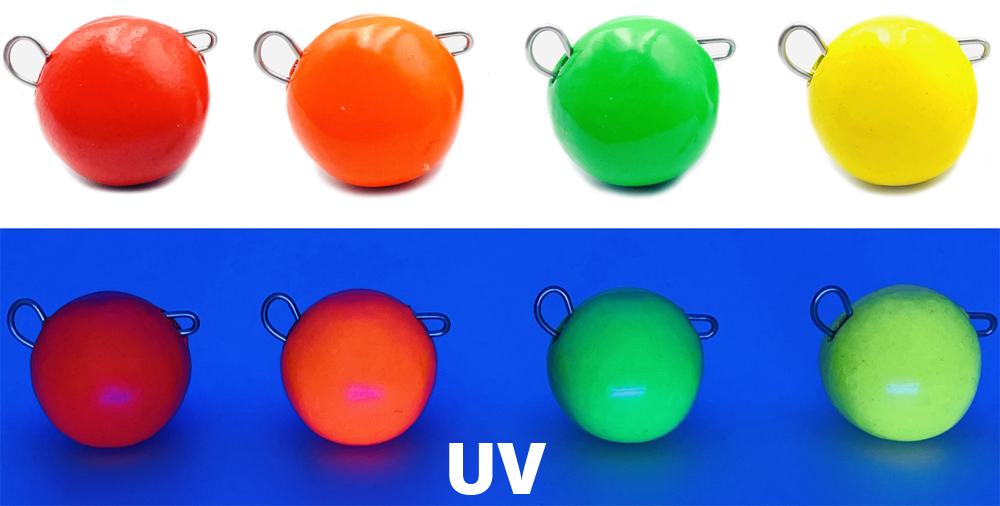 - В ассортименте есть как крашеные груза, в том числе имеющие свечение в ультрафиолете, так и более привычные - свинцовые .