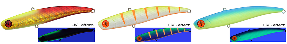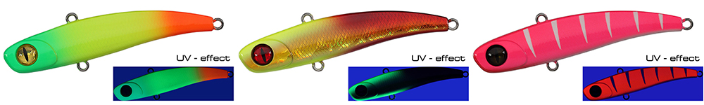 Размер и мощность вибов Jiggle тщательно подобраны, исходя из наших условий ловли. Они достаточно надежны, чтобы противостоять крупному хищнику. При этом у нет излишней грубости, характерной для морских моделей — реализация поклевок остается высокой даже при использовании относительно деликатной снасти с растяжимой мононитью. Приманка представлена тремя моделями: