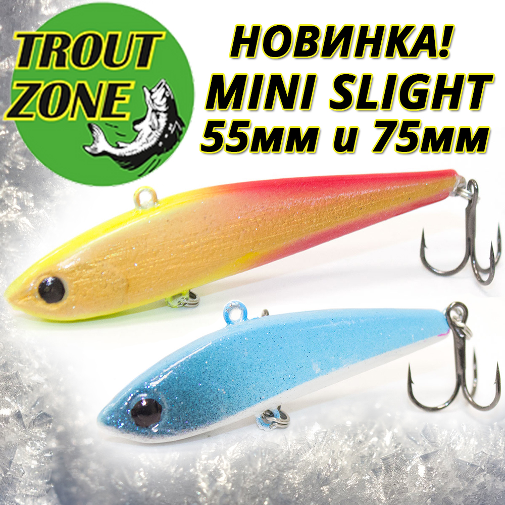 Дорогие друзья, среди огромного многообразия вибов, представленных в нашем интернет-магазине, мы хотим обратить ваше внимание на новинку от Trout Zone - две модели Mini Slight длиной 55 мм и 75 мм. Это реплика легендарной японской приманки, которая сохранила все достоинства своего прототипа и приобрела новые - приемлемую цену для каждого рыболова и впечатляющую палитру уловистых цветов.