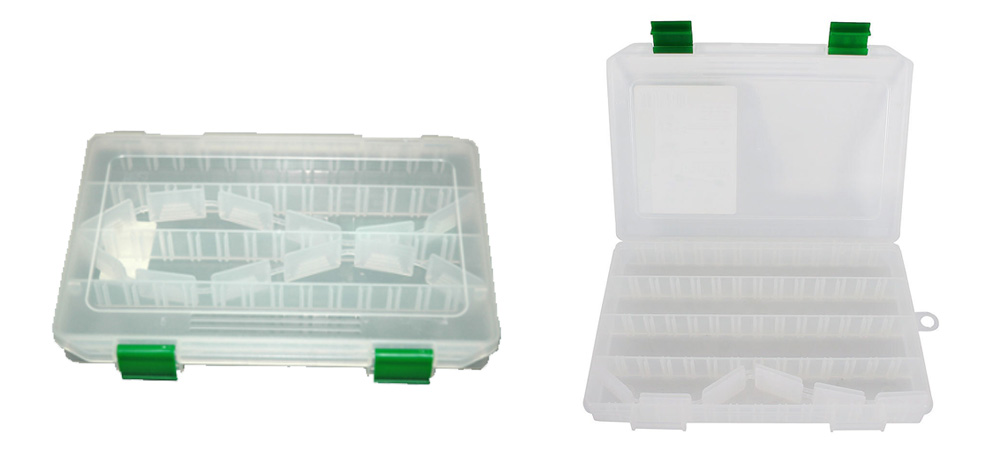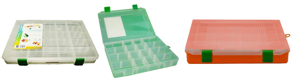 Купить коробки FisherBox можно в исполнениях как со стационарными, так и со сменными перегородками. Версии с регулируемыми размерами ячеек более предпочтительны. В них удобно размещать воблеры и другие предметы нестандартных размеров, имеющие внушительную длину. При этом полезное пространство используется максимально рационально.