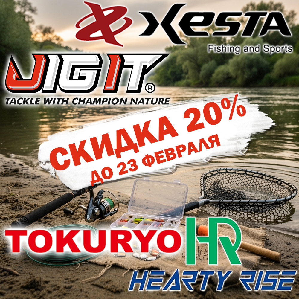 Уважаемые любители рыбалки, рады сообщить Вам о СКИДКЕ 20% на весь ассортимент товаров Hearty Rise, XESTA, Jig It и Tokuryo. Скидки действуют до 23 февраля 2026 года.