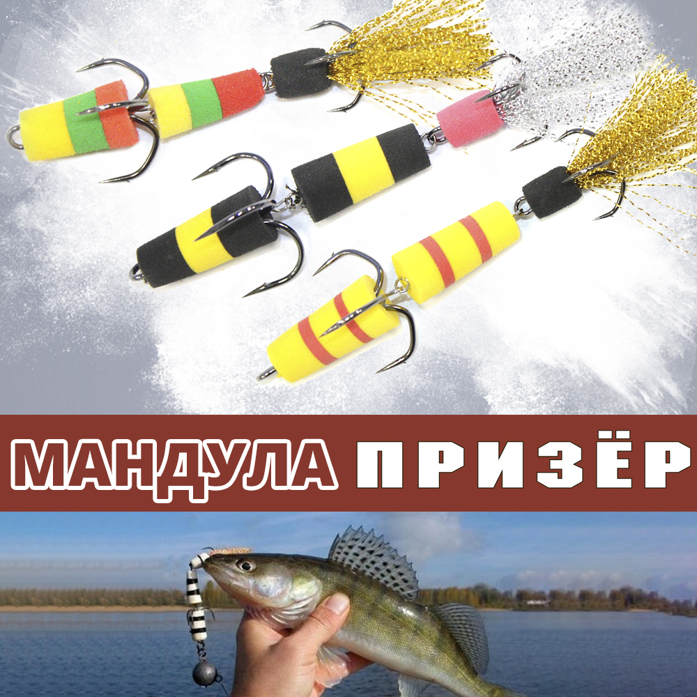 Мандула Призёр имеет оптимальный размер, адаптированный к условиям рыбной ловли в большинстве водоемов. Хвостики из металлизированного люрекса привлекают внимание хищной рыбы. Положительная плавучесть задает вертикальное положение приманке и имитирует кормящегося малька. Оснащена двумя качественными тройниками.