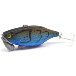 – это глубоководная модель, способная без дополнительных приспособлений заныривать до шестиметровой глубины. Этому способствует крупная лопасть, соответствующего изгиба и длины. Стоит так же сказать, что приманка крупная, визуально она крупнее ширины руки взрослого человека.Воблер обладает очень яркой отражающей способностью, и при своем ритмичном шатании при проводке, отбрасывает равномерные блики. Имеется у приманки и шумовая камера. Акустический шум распространяется далеко от места ее проведения.