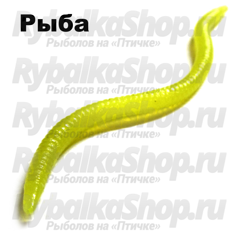 Червь изготовлен из мягкого, но прочного силикона, что сказывается на живучести приманки - не рвется даже при семикратном растяжении. Одной из особенностей приманки является свечение в ультрафиолете, что добавляет привлекательности и видимости червю.