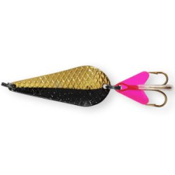 Латвийская торговая марка Shark выпускает доступные блесны для рыбалки. Они имеют простую, но эффективную конструкцию и стабильно работают в любых условиях. Блесна Shark 303-S/1 оснащена впаянным одинарником. Корпус в месте крепления крючка окрашен в яркий оранжевый цвет для большей заметности. Блесны окрашены в классические цвета - медь, серебро, золото. Гладкая поверхность красиво бликует, за счет чего может заинтересовать даже заторможенных хищников.