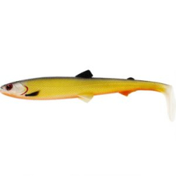 В ассортименте бренда Westin очень много реалистичных приманок, детально имитирующих настоящих рыб. Одна из них - Ricky the Roach Shadtail. Эта модель - практически точная копия плотвы. Дизайнеры постарались сделать приманку максимально естественной: у нее есть рельефная имитация чешуи, живые глаза и реалистичные плавники. Она имеет плотное, высокое тело с коротким хвостом, на котором расположена крупная пятка. Именно хвост отвечает за игру приманки. Он часто и хаотично колеблется на любой интенсивности проводки. Его активная игра не прекращается даже на самой минимальной скорости. Мощные всплески от движения лопатки привлекают хищника с удаленных локаций. Серия виброхвостов Westin Ricky the Roach Shadtail рассчитана на ловлю хищников крупного размера.