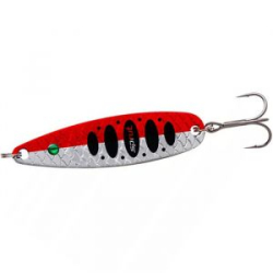 Тройник с мушкой завершают полную картину. Мушка выдерживает множество поклевок. Ее окраска соответствует всем элементам декора блесны. Сделано это для того, чтобы приманка воспринималась хищником как единое целое, и никакой элемент не выбивался бы из общей «картины».