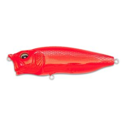 Воблер Megabass PopMax – это самый массивный поппер в арсенале Megabass, его длина почти восемь сантиметров. Конструктивная особенность данной приманки имеет несколько примечательных нюансов, делающих эту приманку тем, чем она является. А является она очень эффективным инструментом ловли, выполненным в сверх реалистичных расцветках при максимально возможном на сегодняшний день качестве изготовления. Передний воздушный «ковшик» сконструирован таким образом, что если приманку остановить при проводке, вода вытекает из него – и стоит снова придать приманке ходу, производится специфический хлюпающий звук. Этот звук напоминает природный, и секрет его звучания достигается наличием помимо самой водозаборной лопатки еще и системой специальных канальцев. По ним потоки воды со звуком выбрасываются из приманки, добавляя всевозможных «кваканий», похлюпываний и тд. Если ускорить ход, то приманка может погрузиться под воду, и из чисто поверхностной превращается в мелко заглубляющуюся. Сам размер приманки и ее шумные особенности дают повод рассчитывать, что заинтересуется данной «добычей» именно крупная рыба.