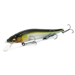 Воблер Megabass Vision OneTen – это медленно всплывающая приманка, очень послушная, реагирует на каждое подергивание удилищем. Этот воблер находится на вооружении профессиональных рыболовов более четырнадцати лет, и его популярность остается по сей день. Самое интересное, что приманка является желанной целью как для крупной рыбы, так и для небольших экземпляров. Воблер имеет довольно большую длину, более одиннадцати сантиметров, оснащен системой специальных балансиров. Благодаря их перемещению в хвостовую часть дальность заброса высока. При проводке балансиры смещаются в переднюю часть, закрепляя «танец» вокруг своего гравитационного воздействия. Лопасть воблера позволяет заныривать до глубины 1,2 метра. Приманка медленно всплывает при паузах, и если в такой момент плавно дать ходу, приманка начинает немного вилять, поскольку балансиры помимо движения вдоль тела воблера, имеют возможность двигаться в поперечном направлении. Получается такой своеобразный танец, разгуливающей рыбки, забывшей об опасности встречи с хищником.