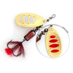 Лепесток блесны Pontoon 21 Synchrony прежде всего отличается своим декором – он двусторонний и к тому же еще и реверсивный. При вращении лепестка удалось добиться оригинального эффекта, близкого к объемному изображению. Хищник видит мельтешащий, провоцирующий рисунок лепестка под любым углом обзора. Это ли не повод для атаки?