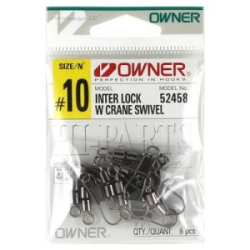 Силовые застежки с вертлюжком Owner 52458 Interlock W Crane применяются в монтажах, требующих повышенной прочности и использующихся на течении, где высока вероятность перекручивания лески. В спиннинговой ловле это прежде всего большие вращающиеся блесны и крупногабаритные воблеры, в том числе и троллинговые. С успехом можно применять эти застежки и в фидерных монтажах, в первую очередь, речных, где используются тяжеловесные кормушки.