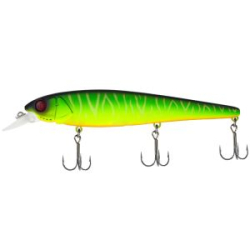 – это не совсем обычная приманка, и все благодаря ее поведению на поверхности. Эта особенность проявляется в придании воблера вертикального положения, с кверху торчащей мордочкой. Кроме того, лопасть имеет свойство создавать хлюпающий звук, почти как у поппера, стоит только начать движение. Эти рывки по приданию приманки ускорения заглубляет воблер, но не глубоко, до 30 см. Приманка достаточно объемна, и пригодится в тех случаях, когда крупные экземпляры рыб охотятся у поверхности. Зафиксировать контакт с рыбой призваны целых три тройника, благо удлиненное тело позволяет гармонично разместить эти острые фиксаторы. Окунь и щука – это наиболее популярные контактеры с данной моделью приманки.