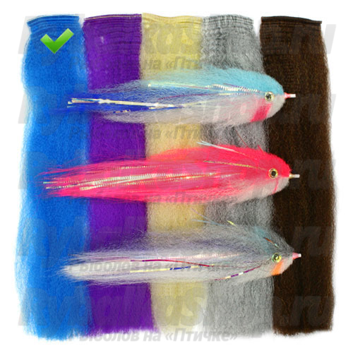 Этот материал применяется для изготовления больших стримеров или мушек, где требуется сделать большое и длинное крыло. RM Synthetic Yak Hair не впитывает в себя воду и поэтому мушку, сделанную из этого материала, достаточно легко забрасывать.