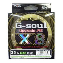 Новинка-2013 - восьмижильный YGK G-soul Upgrade предназначен для японского внутреннего рынка. Предполагается, что этот шнур станет базовой моделью, поднимающей стандарты качества и тактических данных плетеных ПЕ-шнуров на новый, недостижимый ранее, уровень. Производитель сообщает о новом методе плетения и о внедрении в производство последней инновации - покрытия GP, значительно повышающего износоустойчивость и долговечность нити, заметно улучшающего ее вылет. Соотношение толщины и прочности на разрыв, действительно, выглядит революционным (22 lb для нити #1.0 пока не декларировал никто). Шнур, действительно, производит очень сильное впечатление: форма сечения - идеальная окружность, равномерность сечения и качество поверхности по длине нити абсолютны, покрытие очень скользкое и плотное. Его повышенная плотность, безусловно, придется по вкусу любителям ловли кастинговой снастью, а потрясающая прочность на узлах не оставит равнодушной ни одного спиннингиста, независимо от его специализации. Шнур окрашен в очень приятный ярко-зеленый (но не кислотный) цвет и маркирован - метки длиной 15 см нанесены через каждый метр. Made in Japan.