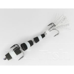 Монтируется Мандула в основном с джиг-головкой. При такой оснастке, как правило, цвет приманки имеет второстепенную роль - главное ее игра, но только не в случае приманок "Флажок". Контрастные полосы "Мандулы" отлично видны хищной рыбе даже на большой глубине.