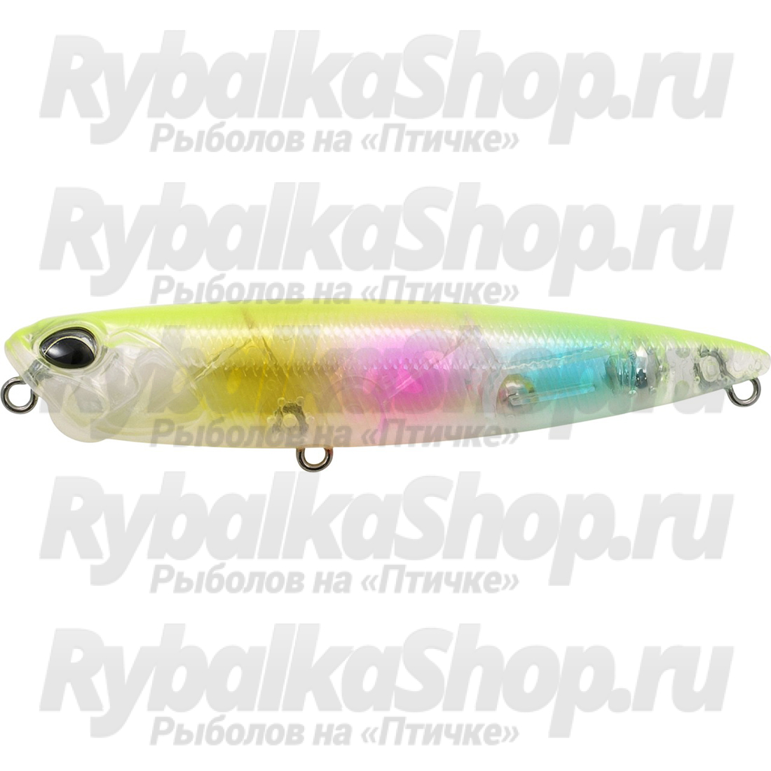 Воблер имеет классическую для уокеров, заднюю огрузку и занимает в воде в спокойном состоянии вертикальное положение;