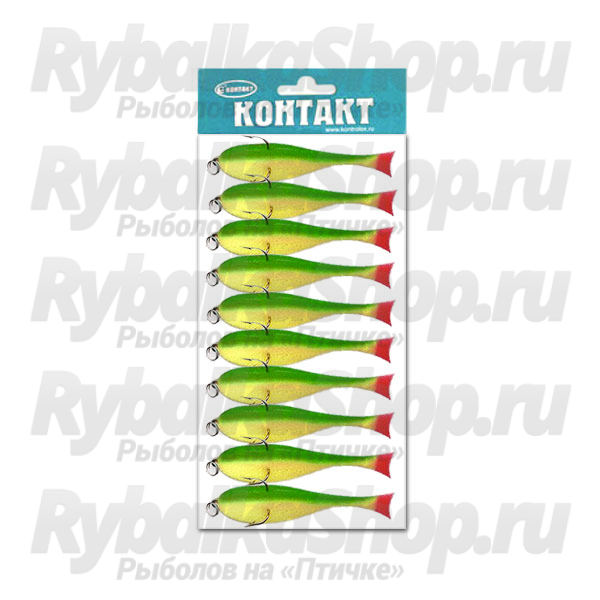 Поролоновые рыбки "Контакт" изготавливаются методом "резки" из плотного и жесткого материала, обеспечивая тем самым долговечность приманки и характерную игру для "резанных" моделей в отличие от плавленного поролона. Приманка качественно склеена и устойчива к механическим повреждениям. Оснащается крючками Eagle Claw и Cannelle. Внутри поролоновой приманки отсутствует «удлинитель», кольцо крючка выходит непосредственно из «головы» рыбки. Ушко крючка независимо от оснастки (двойник или тройник) всегда соосно дужке стандартного «ушастого» груза.