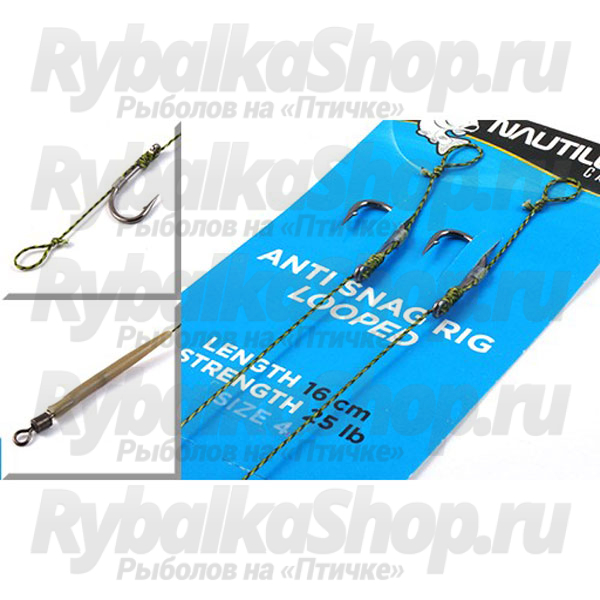 Nautilus Anti Snag Rig – готовая волосяная оснастка на основе мощного, тягового крючка Nautilus Anti Snag и плетеного поводочного материала той же фирмы. Мягкая структура плетенки позволяет создать естественную презентация, а ее камуфляжная расцветка отлично маскируется на фоне дна. Готовый поводок легко прикрепляется к монтажу при помощи вертлюга с быстросъемной клипсой. Дабы уменьшить шанс спутывания во время заброса к оснастке прилагается конус-противозакручиватель.