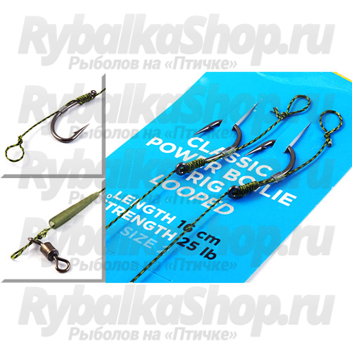 Nautilus Classic Power Boilie Rig – готовая волосяная оснастка на основе мощного, тягового крючка Nautilus Anti Snag и плетеного поводочного материала той же фирмы. Мягкая структура плетенки позволяет создать естественную презентация, а ее камуфляжная расцветка отлично маскируется на фоне дна. Готовый поводок легко прикрепляется к монтажу при помощи вертлюга. Дабы уменьшить шанс спутывания во время заброса к оснастке прилагается конус-противозакручиватель.
