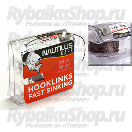 Nautilus Fast Sinking - мягкий, быстротонущий поводочный материал из плетеного волокна. Камнем идет на дно при попадании в воду, что будет особенно предпочтительно при ловле в условиях с большим количеством водорослей и мусора на дне. Мягкая структура материала создает максимально эффективную презентацию, которая не вызовет подозрений даже у самого осторожного карпа. Перед забросом поводок из Fast Sinking стоит подержать в воде, это увеличит коэффициент отрицательной плавучести и позволит материалу увереннее пробивать воду.