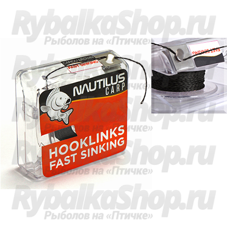 Nautilus Fast Sinking - мягкий, быстротонущий поводочный материал из плетеного волокна. Камнем идет на дно при попадании в воду, что будет особенно предпочтительно при ловле в условиях с большим количеством водорослей и мусора на дне. Мягкая структура материала создает максимально эффективную презентацию, которая не вызовет подозрений даже у самого осторожного карпа. Перед забросом поводок из Fast Sinking стоит подержать в воде, это увеличит коэффициент отрицательной плавучести и позволит материалу увереннее пробивать воду.