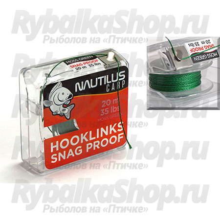 Nautilus Snag Proof поводочный материал средней жесткости с защитой от абразивной нагрузки. Применяется как и другие плетеные поводки для создания реалистичной презентации, несколько уступает по мягкости незащищенным, но в отличии от них позволяет увереннее действовать в условиях донного мусора так как лучше сопротивляется перетиранию.