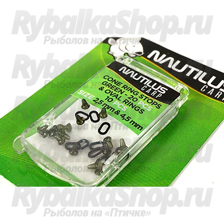 Nautilus Cone Ring Stops With Oval Ring – набор из стопрков на крючок и овальных колец для волоса. Используются в карповой ловле для создания волосяной оснастки скользящей по цевью крючка. Данный тип оснастки используется в сочетании с POP-UP приманками и создает очень реалистичную презентацию, за счет большой степени свободы.