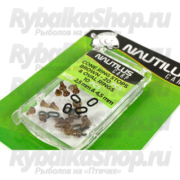 Nautilus Cone Ring Stops With Oval Ring – набор из стопрков на крючок и овальных колец для волоса. Используются в карповой ловле для создания волосяной оснастки скользящей по цевью крючка. Данный тип оснастки используется в сочетании с POP-UP приманками и создает очень реалистичную презентацию, за счет большой степени свободы.