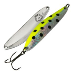 Японская уловистая форелевая колеблющаяся блесна колебалка Mukai Clue для ловли прудовой форели на коммерческих платных прудах или так называемых "форелевых платниках". Так же на них хорошо ловится весь белый хищник не исключение и окунь. Оснащение - безбородый крючок № 6. Место ловли - Пруд. Блесна продолговатой формы с активной игрой на разных скоростях проводки. Очень проста и легка в освоении для новичков в форелевой рыбалке. Универсальный вес позволит обловить самые перспективные места стоянки форели, а довольно таки мощный крючок не позволит сойти клюнувшей рыбе. Все приманки от фирмы Mukai прошли тестирование Японскими специалистами, с хорошим лакокрасочным покрытием и большой цветовой гаммой и разницей в весах.