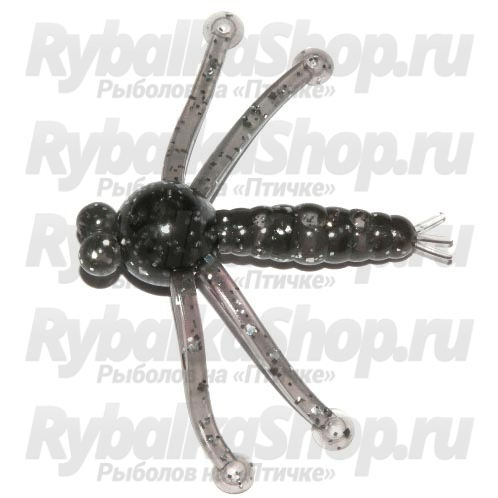 Тело приманки тоненькое, сегментированное, напоминающее личинку насекомого, или его брюшко. На одном конце тельца довольно крупный силиконовый шарик с глухим отверстием. Также три небольших отверстия имеются на протяжении тела приманки. На другом конце тельца имеются три маленьких отросточка. А на шарике есть небольшая головка, львиную долю которой занимают два глаза и четыре длинных плоских лапки. На концах лапок небольшие выемки, как бы присоски.