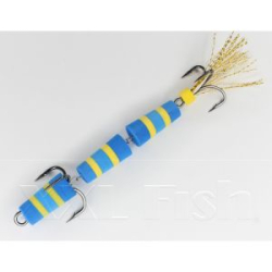 К этой приманке Мандула "Флажок" XXL Fish Модель №140 судак подходит по-иному - заглатывает сзади, как червя, и последний тройничок приходится извлекать из-глубока. Преодолев скепсис, рыбаки пробуют ловить такой длинной приманкой и с удивлением убеждаются в её уловистости.